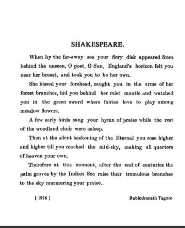 এই গ্রীষ্মে মিলিত হয়েছে রবীন্দ্রনাথ ও শেক্সপিয়র দু’জনেরই জন্মদিনের উপলক্ষ। এই দুই বিশ্বকবিকে আমাদের সশ্রদ্ধ প্রণতি!