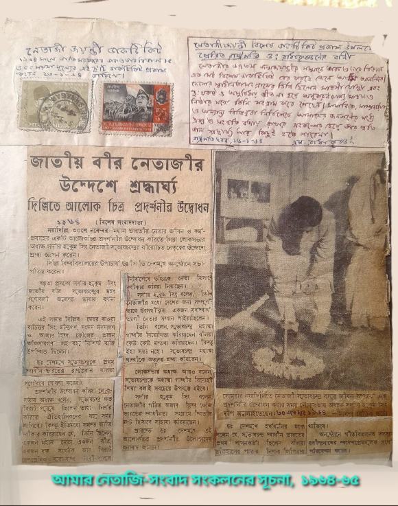 আমার জ্ঞানবয়স থেকেই বাড়িতে আসত আনন্দবাজার পত্রিকা ও সাপ্তাহিক দেশ পত্রিকা। সেগুলিতে প্রকাশিত নেতাজী বিষয়ক সব সংবাদের নিয়মিত পাঠক ছিলাম আমি। নেহরুর আমলের শেষের দিকেই ভারত সরকার নেতাজির ছবি সম্বলিত দুটি ডাকটিকিট ও ফার্স্ট ডে কাভার প্রকাশ করেছিল। এ দুটি যেন অন্যান্য ডাকটিকিটের তুলনায় আরেকটু অতিরিক্ত উৎসাহের সঙ্গে আমার স্ট্যাম্প অ্যালবামে যুক্ত হয়েছিল। নেহরুর মৃত্যুর কয়েক মাস পরেই যখন দিল্লিতে আয়োজিত হল নেতাজির আলোকচিত্রের এক প্রদর্শনী, তার উদ্বোধনী অনুষ্ঠানে দিল্লি বিশ্ববিদ্যালয়ের উপাচার্য সি ডি দেশমুখ নেতাজিকে বর্ণনা করলেন স্বাধীন ভারতের প্রথম রাষ্ট্রপ্রধান বলে, কিংবা নেতাজির জন্মদিনে প্রথম বাণী দিলেন ভারতের প্রধানমন্ত্রী শাস্ত্রীজি, খবরকাগজের পাতায় ছাপা সেই উদ্দীপক সংবাদগুলোর কথা আজও মনে পড়ে। এরকমই আরো কয়েকটি উপলক্ষ ছিল ১৯৬৫ সালে শাস্ত্রীজির কলকাতায় এসে নেতাজির প্রথম পূর্ণাবয়ব মূর্তির উন্মোচন, ১৯৬৭ সালে জাপান থেকে নেতাজির একটি তরবারি প্রথমে কলকাতায় ও পরে দিল্লির লালকেল্লায় নিয়ে এসে সম্মান প্রদর্শন, ১৯৬৮ সালে আজাদ হিন্দ সরকার প্রতিষ্ঠার রজত জয়ন্তী উপলক্ষে বিশেষ ডাক টিকিট প্রকাশ ও অন্যান্য অনুষ্ঠান, ১৯৬৯ সালে কলকাতার শ্যামবাজারে নেতাজির অশ্বারোহী মূর্তির বহু প্রতীক্ষিত উন্মোচন, ১৯৭০ সালে কলকাতায় এক প্রদর্শনীতে পশ্চিমবঙ্গের উপমুখ্যমন্ত্রী জ্যোতি বসুর প্রকাশ্য স্বীকারোক্তি “নেতাজি সম্পর্কে অতীতে আমরা ভুল বলেছিলাম!” ইত্যাদি। প্রতিবছর তেইশে জানুয়ারি পশ্চিমবঙ্গের সব খবরকাগজেই নেতাজিকে নিয়ে ছাপা হত পাতা-জোড়া শ্রদ্ধার্ঘ্য! সংবাদপত্র থেকে কেটে নিয়ে এই সব ছবি ও লেখাই আমি সংগ্রহ করে রাখতাম। যখন কোন বই বা পত্রিকাতে নেতাজির কোন ছবি দেখে আকৃষ্ট হতাম, যা কেটে নেওয়া সম্ভব হত না, তখন তাতে দমে না গিয়ে আমি হয় ট্রেসিং পেপারের সাহায্য নিয়ে সেই ছবিগুলোর পেন্সিল দিয়ে ছাপ তুলে অথবা সেগুলি দেখে নিজেই হাতে এঁকে তার প্রতিলিপি তৈরি করে ফেলতাম। এছাড়া যে সময় সুভাষচন্দ্র ভারতবর্ষে সশরীরে বিরাজ করছেন, তখন তাঁর যেসব ছবি বা বিবৃতি পত্র-পত্রিকায় প্রকাশিত হত, তার কিছু নমুনাও পাওয়া গিয়েছিল আমার বাবার তরুণ বয়সের সংগ্রহ থেকে। এই সবরকম উপকরণই একটি খাতায় সেঁটে নিয়ে আমি তৈরি করেছিলাম বিশালাকৃতি এক নেতাজি-অ্যালবাম।