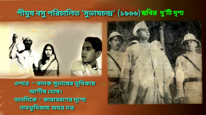 আমাদের কিশোরবেলায় সমসাময়িক জনমানসে নেতাজির জীবন ও আদর্শ সম্পর্কে ধারণা ও চেতনার জাগরণে উল্লেখযোগ্য অবদান যুগিয়েছিল দুটি ছায়াছবি – একটি হিন্দি ও অন্যটি বাংলা। দুটি ছবিই মুক্তি পেয়েছিল ১৯৬৬ সাল নাগাদ। বাংলা ‘সুভাষচন্দ্র’ ছায়াছবিটির পরিচালক ছিলেন পীযূষ বসু। এটিতে সুভাষচন্দ্রের ছেলেবেলা, কিশোরকাল ও যৌবন বয়সের ভূমিকায় দেখা গিয়েছিল যথাক্রমে আশিস ঘোষ, সমরকুমার ও অমর দত্ত এই তিন অভিনেতাকে। সুভাষচন্দ্রের শিক্ষাগুরু বেণীমাধব দাস ও রাজনৈতিক গুরু চিত্তরঞ্জন ছাড়াও এই ছবিতে উপস্থিত করা হয়েছিল স্যার আশুতোষ, আচার্য জগদীশচন্দ্র ও আচার্য প্রফুল্লচন্দ্রের মতো বাংলার নবজাগরণের উজ্জ্বল নানা চরিত্রকে। অসাধারণ অভিনয় ছাড়াও এই ছবির বিশেষ সম্পদ ছিল রজনীকান্ত, দ্বিজেন্দ্রলাল, অতুলপ্রসাদ ও স্বামী বিবেকানন্দ প্রমুখের রচিত বিভিন্ন গান। এর মধ্যে বিশেষ জনপ্রিয়তা অর্জন করেছিল লতা মঙ্গেশকরের কন্ঠে গাওয়া ‘একবার বিদায় দে মা’ গানটি, যেটির কথা হয়তো আমাদের সমবয়স্ক ও সমমনস্ক বাঙালিরা এখনো স্মরণ করতে পারবেন। কাঠজুরি নদীর ধারে বালির ওপর একাকী বসে থাকা বালক সুভাষ ও সামনে দিয়ে এই গান গাইতে গাইতে চলে যাওয়া এক অন্ধ ভিক্ষুক ও তার মেয়ের ছবিটি এখনো যেন চোখে ভাসে! এই ছবিটির কাহিনী শেষ হয়েছিল সুভাষচন্দ্রের প্রথম কারাবরণের ঘটনায়। এই ঘটনাটিকে যথেষ্ট নাটকীয়ভাবে উপস্থাপিত করতে গিয়ে ছবিটিতে কিছু কল্পনার আশ্রয় নিতে হয়েছিল, কিন্তু তা দর্শকের মনে কাঙ্খিত শ্রদ্ধা ও মুগ্ধতার আবেশসৃষ্টিতে যে যথেষ্ট সফল হয়েছিল। যুবাবয়সী সুভাষের চরিত্রে অমর দত্তের সেই মর্যাদাব্যঞ্জক অভিনয় ও দৃপ্ত ভঙ্গিমা আজও মনে গাঁথা হয়ে আছে!