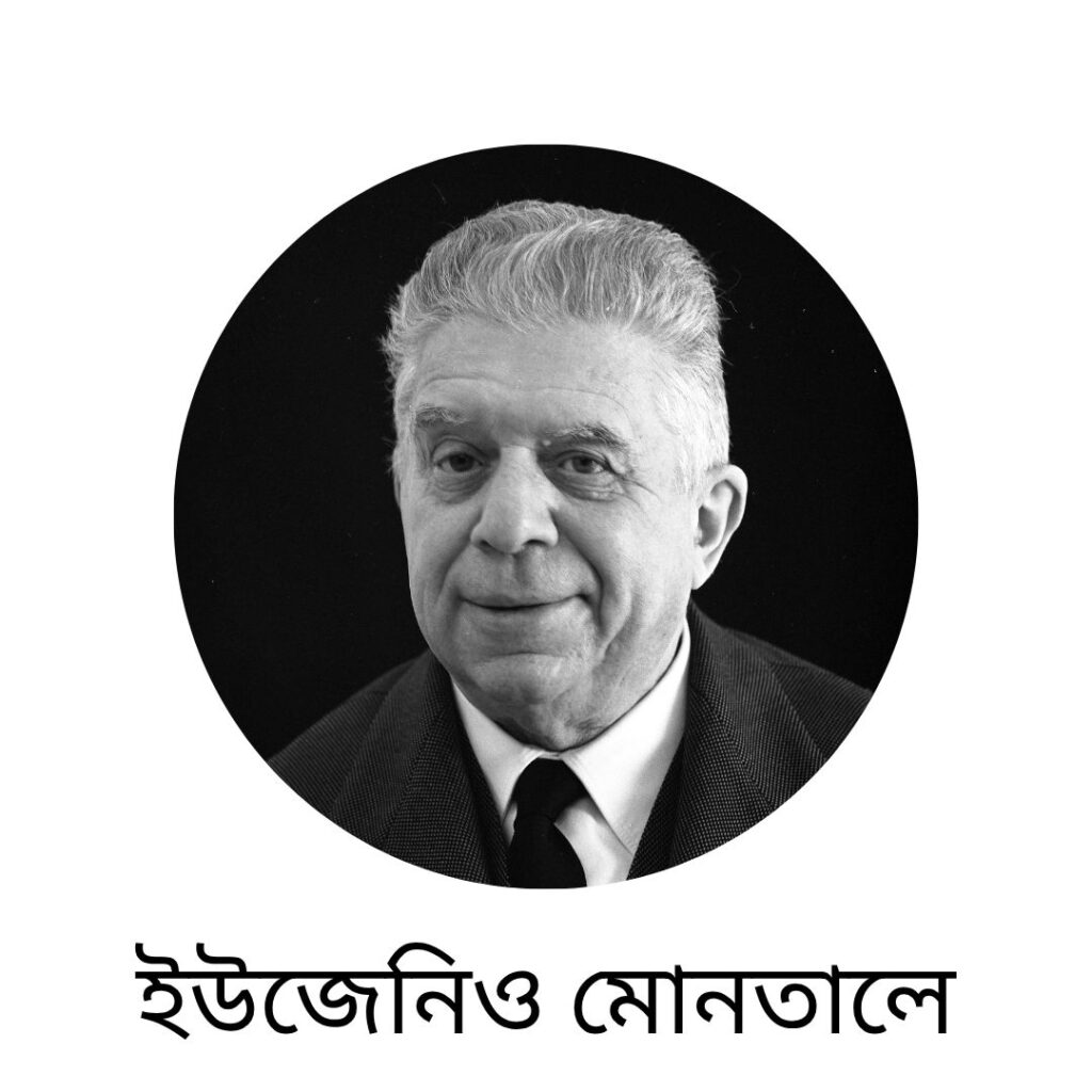 কবির নাম : ইউজেনিও মোনতালে ( জন্ম : ১২/১০/১৮৯৬, মৃত্যু : ১২/০৯/১৯৮১)। নিজে যেমন অজস্র কবিতা লিখেছেন, লিখেছেন ছোটো গল্প নতুন নতুন আঙ্গিকে, তেমনি বিশ্বসাহিত্যের অজস্র কবিতা অনুবাদ করে নিজের সাহিত্যকেও যথেষ্ট সমৃদ্ধ করেছেন। করেছেন ধ্রুপদী গানের সাধনা, বিশেষ করে বেল ক্যান্টোর। সাহিত্যের সাথে সঙ্গীত সমালোচক হিসেবেও তিনি ছিলেন অত্যন্ত বিদগ্ধ। ধার ধারতেন না কোনোরকম মতলববাজী রাজনীতির। নিজেই লিখেছেন, “রাজনীতি না করার জন্য এবং কোনো গোষ্ঠীভুক্ত না হওয়ার ফলস্বরূপ ১০ বছর বেকারিত্বের পর আমি ১৯৪৮ সালে মিলানের একটি প্রখ্যাত দৈনিকে (Corriere della Sera, Evening Courier) সম্পাদকীয় বিভাগের যোগ দিই।